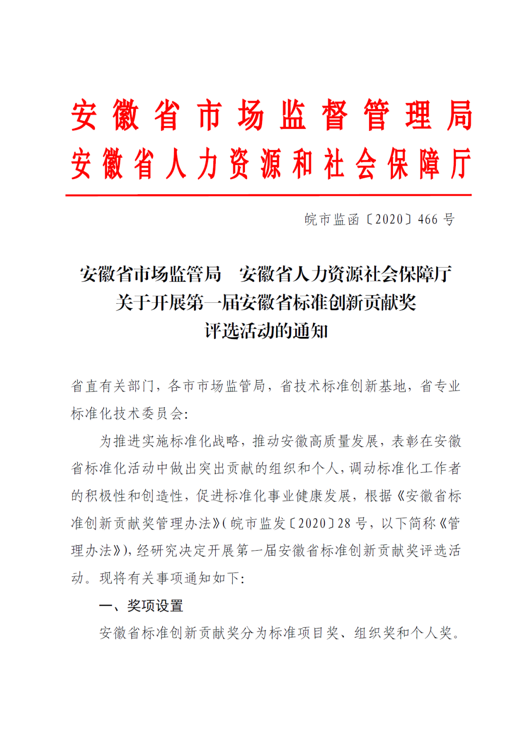 - 最高獎金20萬,第一屆安徽省標準創新貢獻獎評選活動開始