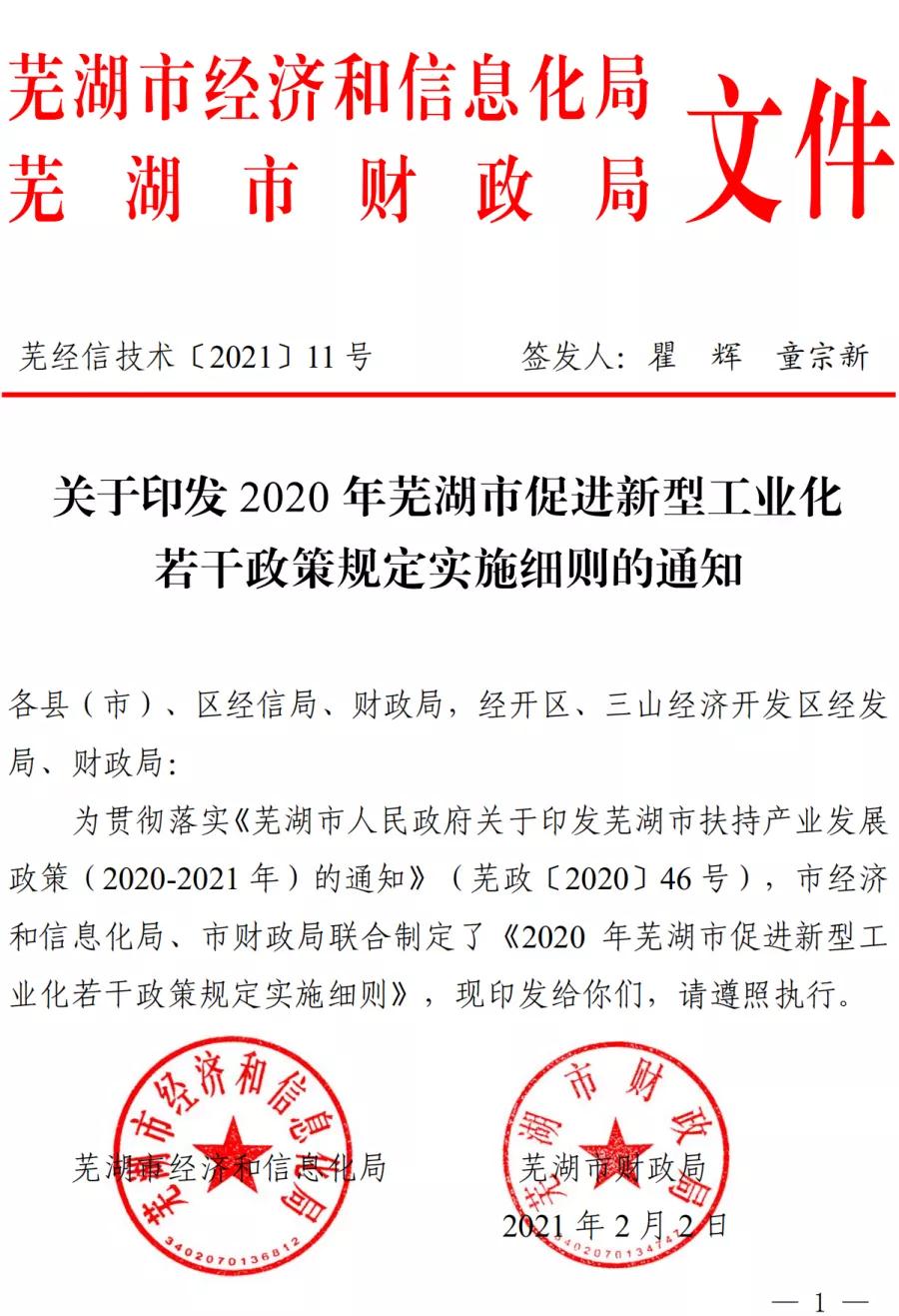 蕪湖市2020年促進新型工業(yè)化若干政策規(guī)定實施細則印發(fā)