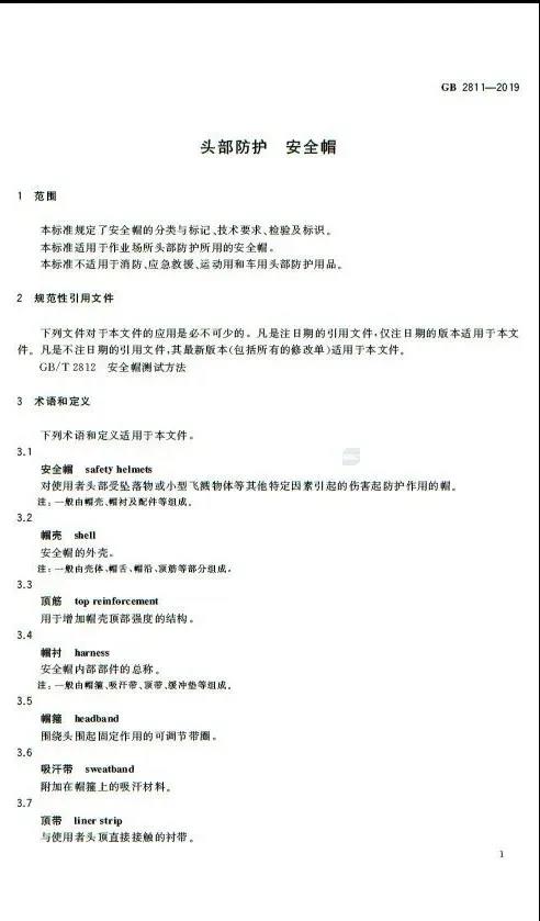 國家市場監管總局、國家標準委批準發布新版安全帽標準GB2811-2019《頭部防護 安全帽》,將于2020年7月1日起正式生效。