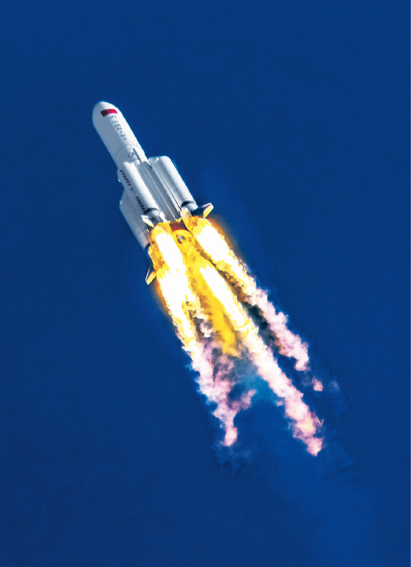 2020年5月5日18時0分,長征五號B運(yùn)載火箭點(diǎn)火升空,我國載人空間站階段飛行任務(wù)首戰(zhàn)告捷,載人航天工程第三步發(fā)展戰(zhàn)略順利開啟。5月8日13時49分,長征五號B搭載的新一代載人飛船試驗(yàn)船返回艙在東風(fēng)著陸場預(yù)定區(qū)域成功著陸,試驗(yàn)取得圓滿成功。圖為長征五號B運(yùn)載火箭正在升空。 人民視覺 陳肖/攝