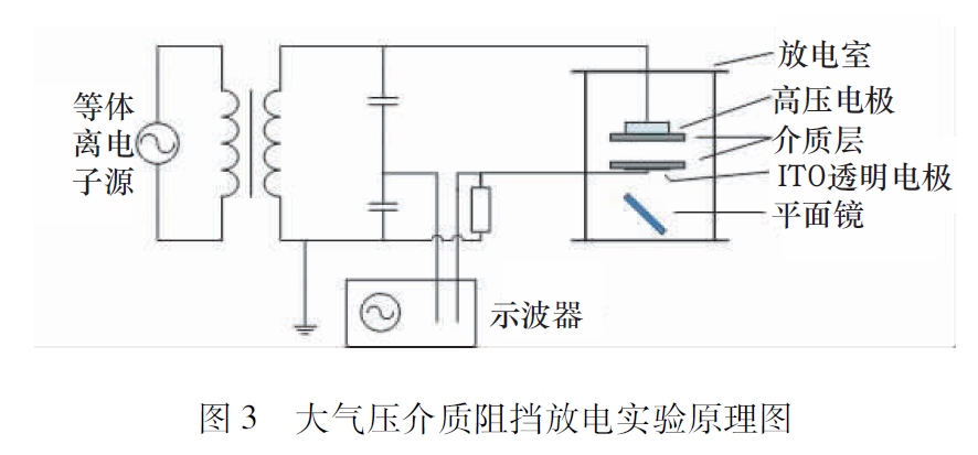 我們這里研究的大氣壓介質(zhì)阻擋放電和剛才講的非線性動(dòng)力學(xué)到底有什么關(guān)系呢?圖3是華南理工大學(xué)的放電實(shí)驗(yàn)原理圖。從電路的角度來看,這個(gè)實(shí)驗(yàn)系統(tǒng)有一個(gè)交流電源,這個(gè)電源連接到放電室中,放電室里有電極和阻擋介質(zhì),在實(shí)驗(yàn)中我們可以直接測(cè)量電源電壓和放電電流。